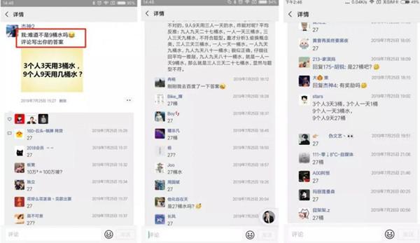除了在客户的朋友圈动态下互动,还可以自己制造相应的话题,来引起客户们的互动,比如发一条比较有意思的脑筋急转弯,引起大家的兴趣。
